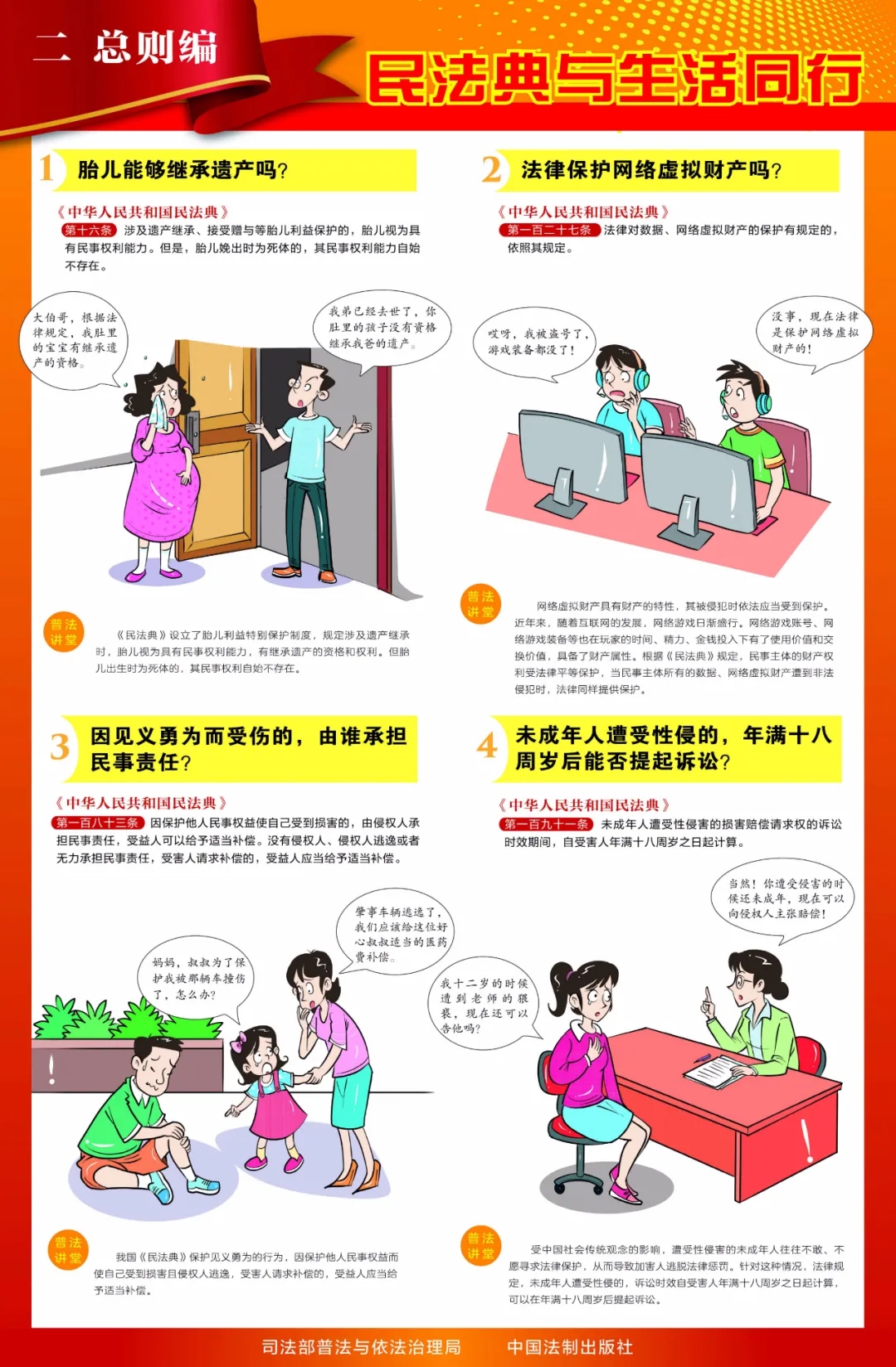 为深入贯彻落实习近平总书记关于广泛开展民法典普法工作的重要指示,司法部普法与依法治理局会同中国法制出版社编辑了《民法典与生活同行》系列挂图(一套9张),如下: