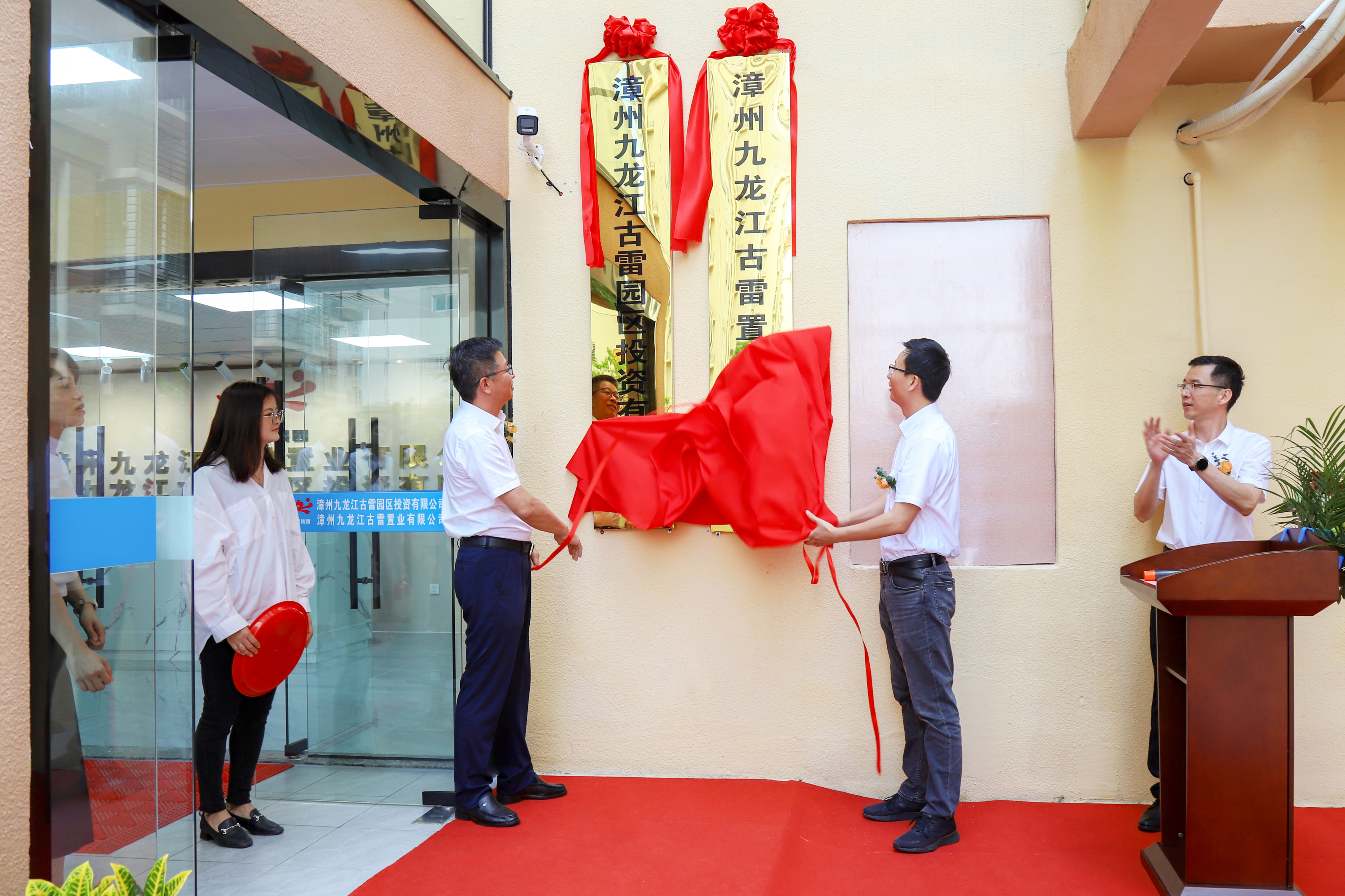 古雷开发区党工委副书记陈再顺,太阳成集团tyc234cc集团党委委员、副总经理兼九古发展集团党委书记、董事长刘艺飞以及古雷开发区相关单位代表参加揭牌仪式。