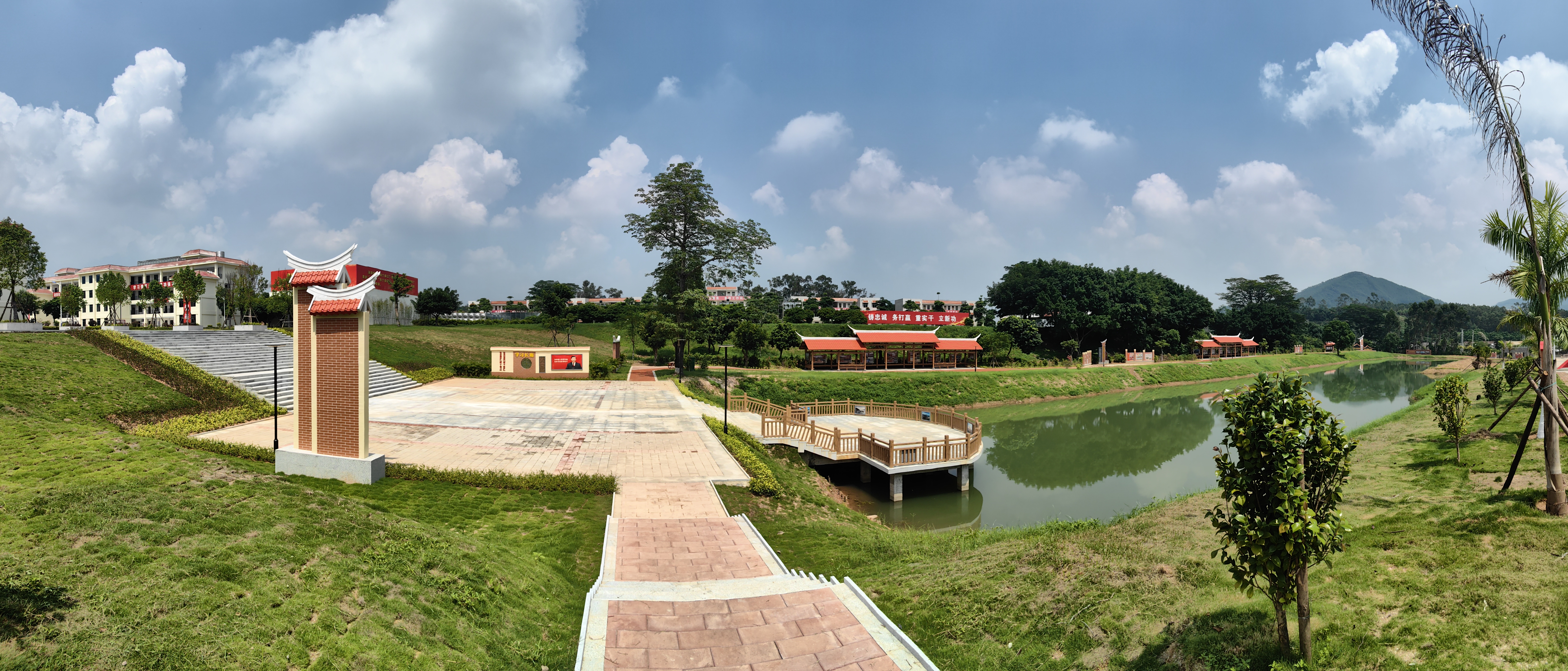 该项目通过搭建下沉式沿湖广场、学习长廊、环湖步道等建筑,将学习习近平新时代中国特色社会主义思想,展现新时代“军魂”及漳州发展成就有机结合,形成一个“学习休闲两不误”的主题区。