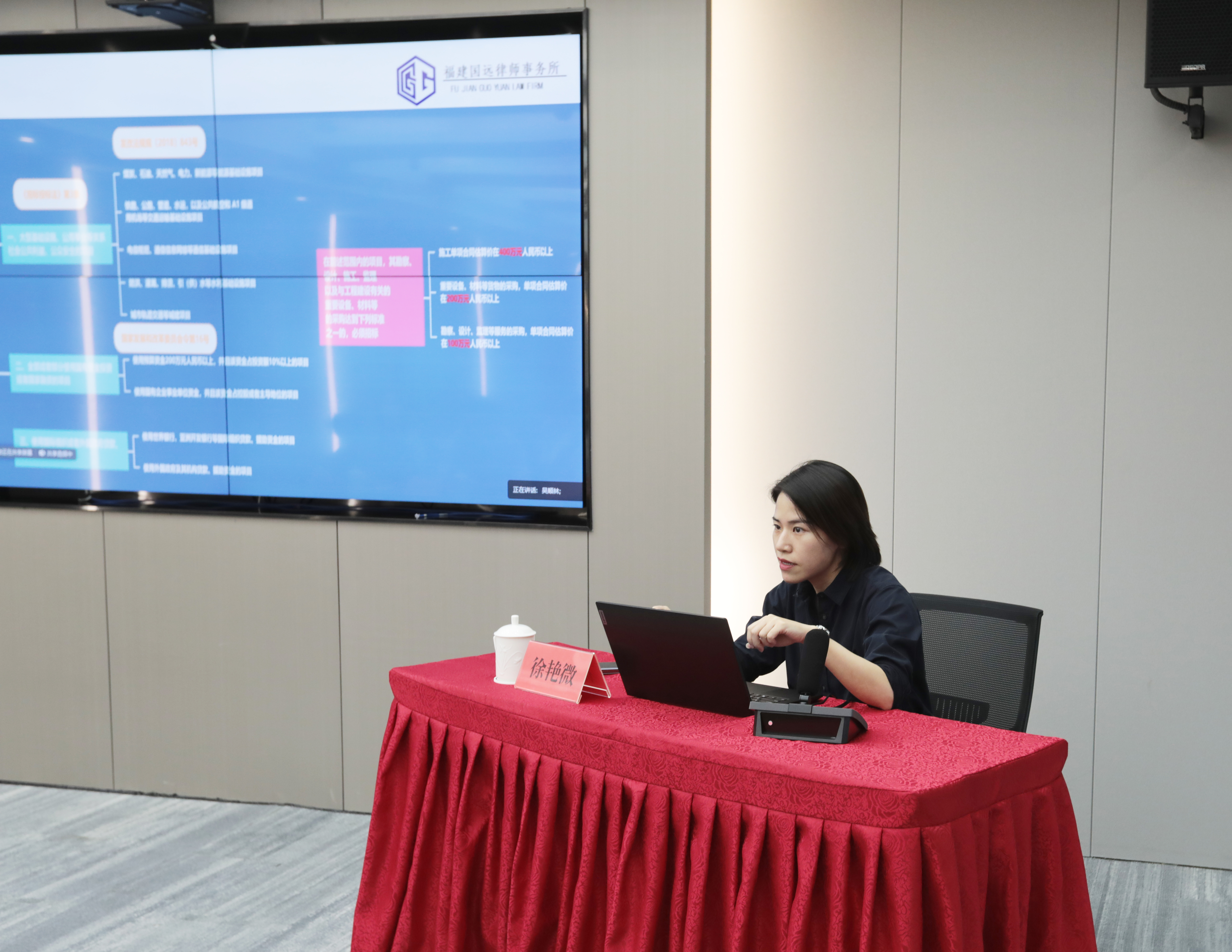 徐艳微律师以《招标投标法》《招标投标法实施条例》及招投标方面最新的法律法规为基础,从招标项目的识别为出发点,介绍了必须招标项目的范围与规模及例外情形;重点讲解了招标文件的编制审核要点,包括招标文件编制的主要内容、程序的合法性及关键节点的时间要求;同时,结合徐艳微律师在招投标领域丰富的实务经验,对实务中存在的招投标异议、投诉处理、异议答复等方面进行分析,通过现场互动模式进行答疑解惑,增强培训效果,落到工作实处。