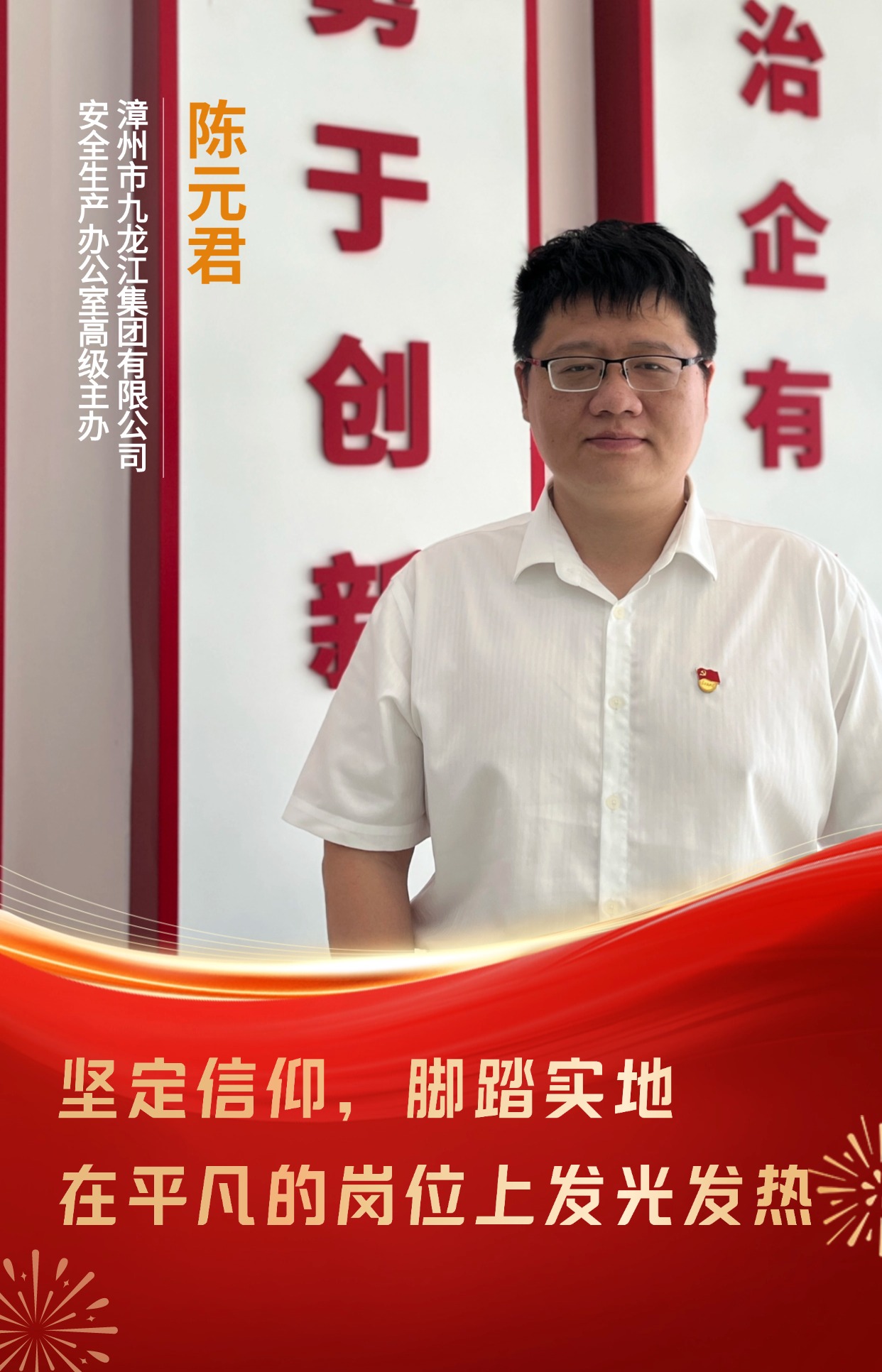 陈元君同志阳光朝气,充满活力,将自己的青春和汗水奉献在集团安全生产管理岗位上。他朴实严谨,常抓不懈,用拼搏践行着为人民服务的根本宗旨。他时时处处以党员的标准严格要求自己,注重理论知识和业务知识的学习,不断提升自身理论水平和业务能力,在集团的安全生产制度建设、隐患排查与整改、应急管理、企业安全文化建设等方面做出了卓越的贡献。他始终保持着高昂的精神面貌和饱满的工作热情,为集团的安全发展贡献着自己的力量。