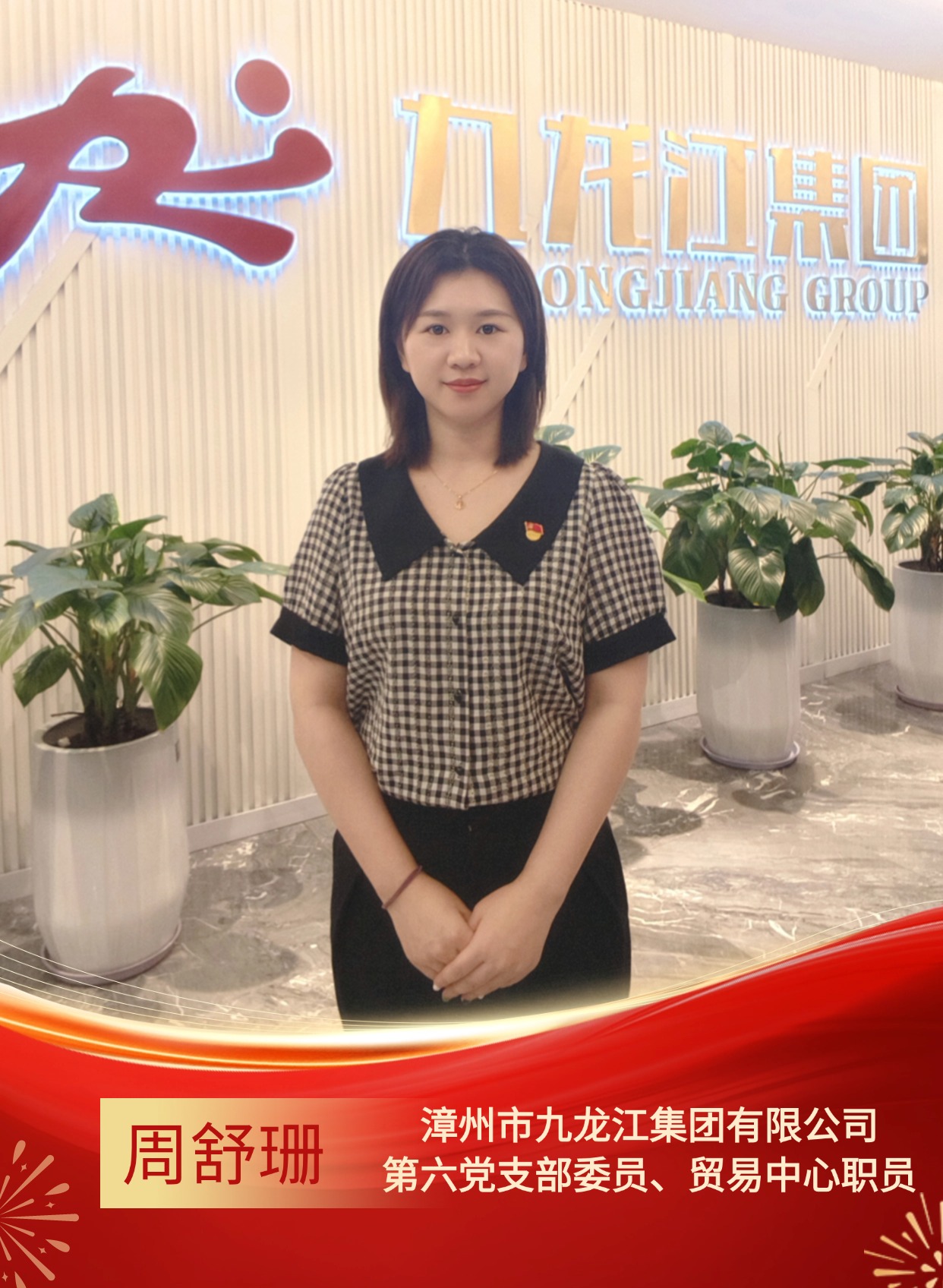周舒珊同志始终秉承高度的责任心和敬业精神,她工作认真负责,身兼数职,能够快速响应工作中的各项新任务和需求。在面对困难和挑战时,她立足岗位发挥作用,冲锋在前,勇挑重担,高效推进团队贸易业务执行工作及部门综合性业务有序进行。她充分发挥模范带头作用,在出色完成本职工作的基础上,积极承担第六党支部宣传、纪检监察工作,积极参与、组织、宣传各类党建活动和新时代廉洁文化建设活动,用实际行动践行共产党员的先进性和纯洁性。