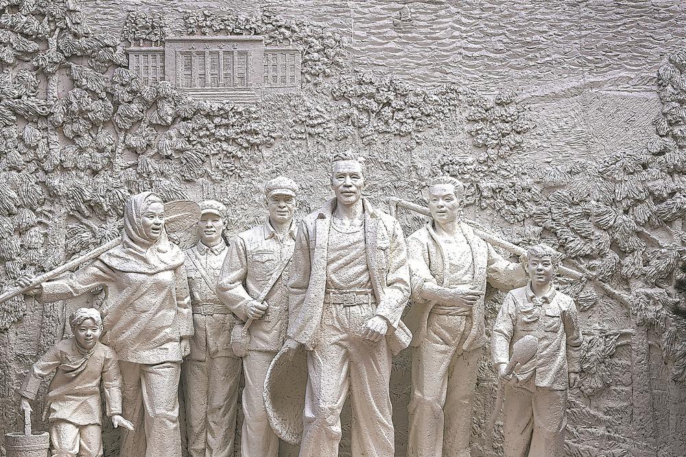 谷文昌纪念馆内,一幅“谷文昌带领东山人民植树造林”的浮雕栩栩如生。记者 林熙 摄