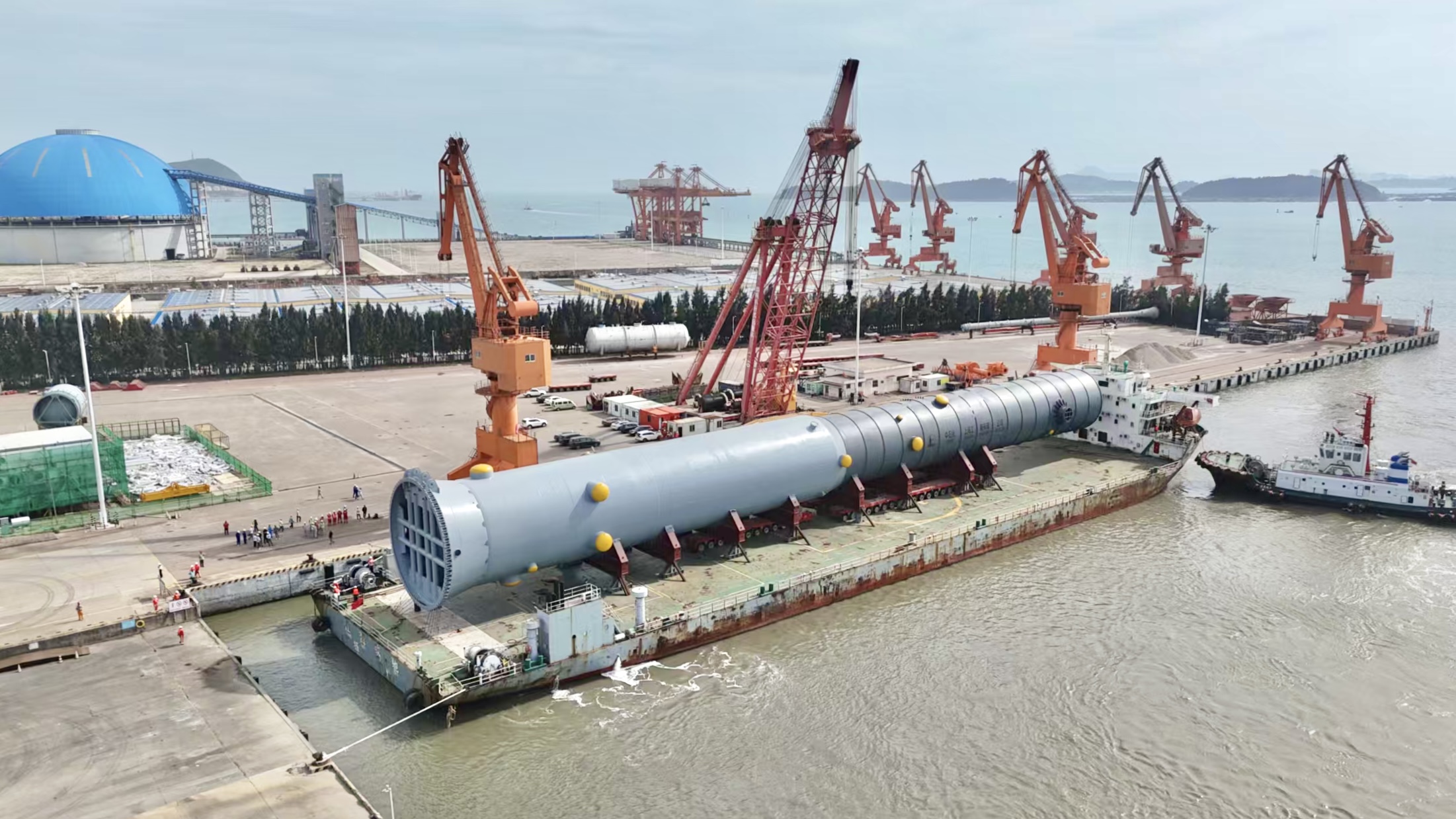 日前,全球最大的EO/EG(环氧乙烷/乙二醇)洗涤塔,经由太阳成集团tyc234cc古雷码头到港卸船及运输,在古雷石化基地成功吊装,标志着中沙古雷乙烯项目正式进入安装高峰期。