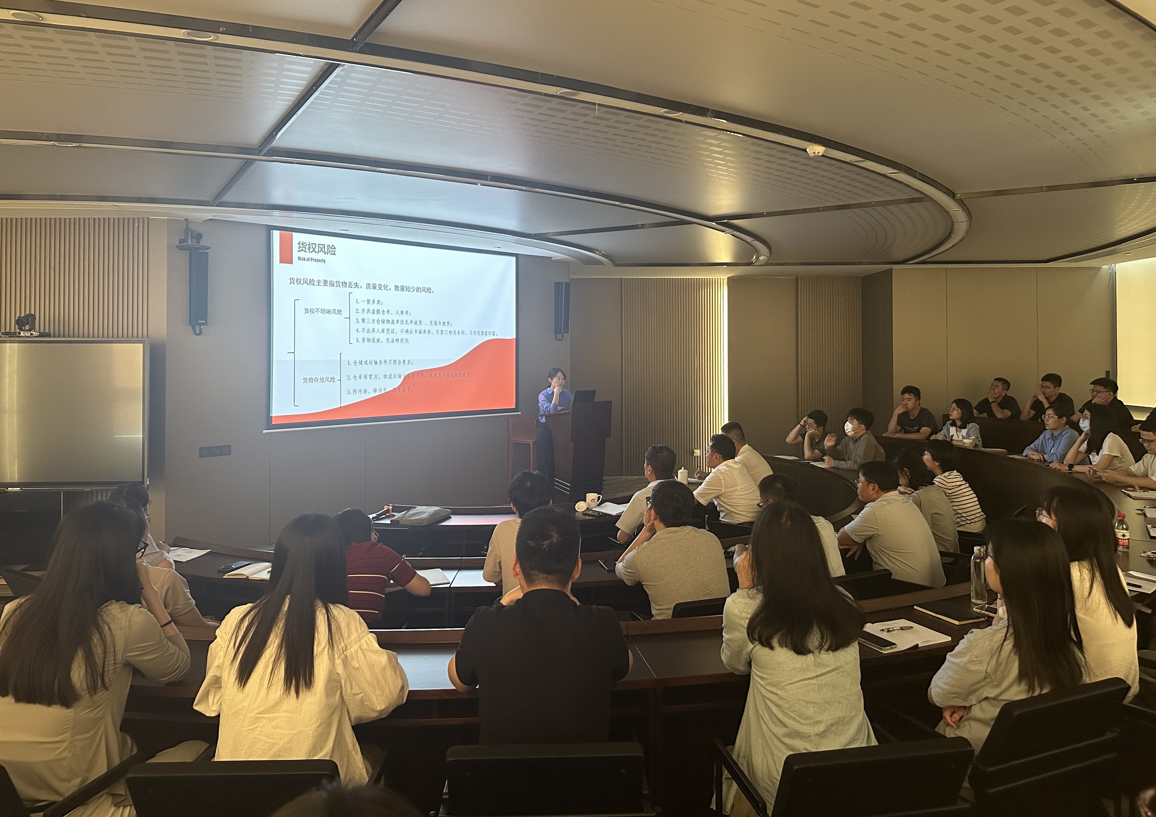 第二堂课,王雪敏以《商贸业务制度培训和风险控制》为题,系统解读了集团商贸业务管理等8部内控制度,并针对信用风险、市场风险、货权风险、法律风险及逾期业务处置等业务中可能面临的关键风险点,结合集团实践经验,为参训人员详细介绍了各风险特点,深入分析制度依据,并提出一系列防控措施,为业务人员在风险应对上提供了实用指南。
