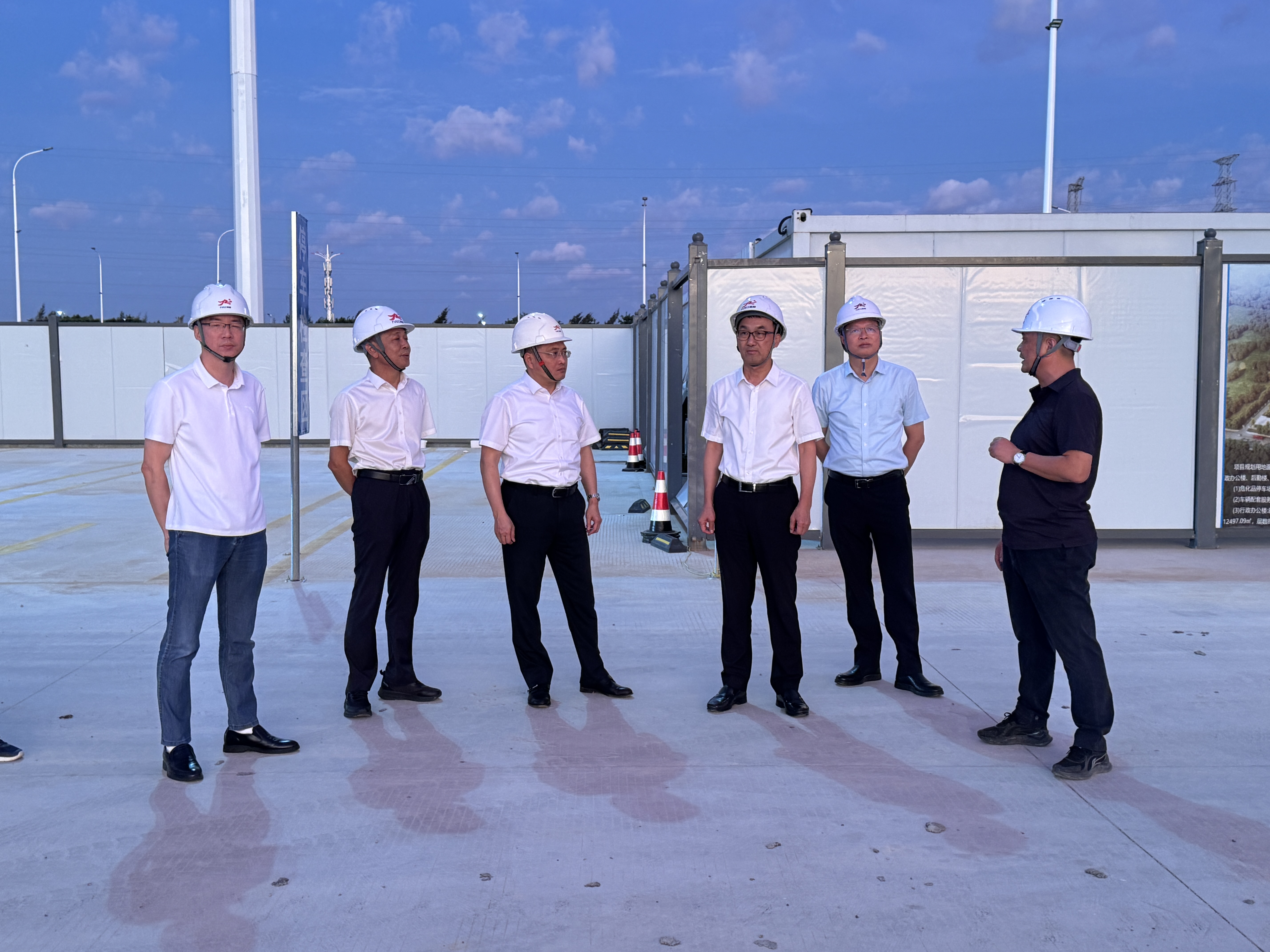 ▲检查组一行在公路港项目现场
