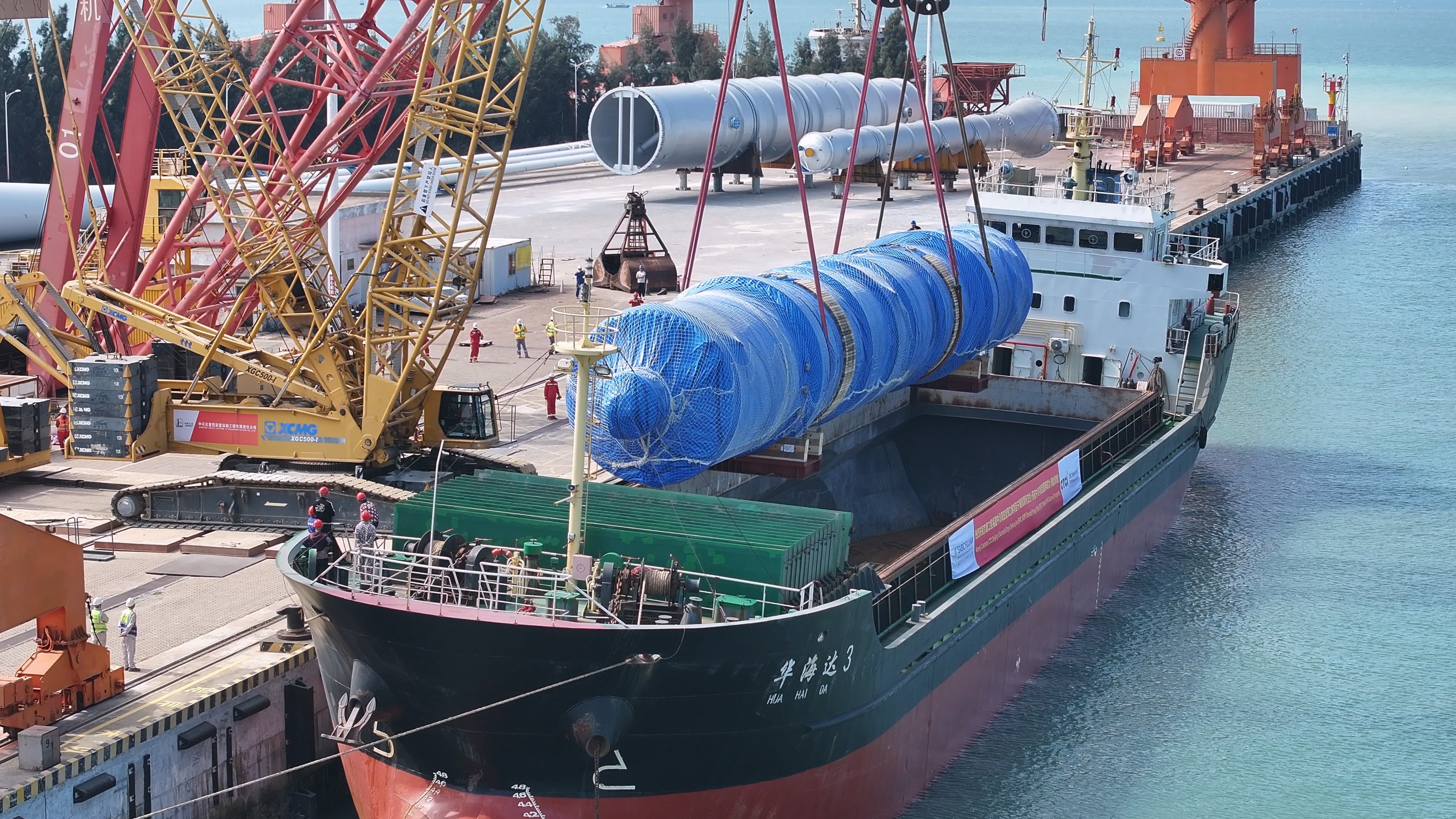 此次抵港的大型设备规格堪称“巨无霸”:长45米、宽5.6米、高5.8米,净重达472.5吨。该设备采用特殊设计,是中沙古雷乙烯项目高端双峰HDPE(高密度聚乙烯)装置的核心设备。