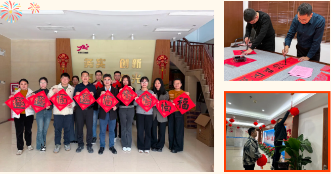 九古发展集团工会组织开展“义写春联送祝福”志愿服务活动,职工书法爱好者提笔挥毫,将新春期盼凝于笔端,为职工送上新春祝福;同步开展办公区域新春布置,张贴传统窗花,让办公空间更添温馨年味。